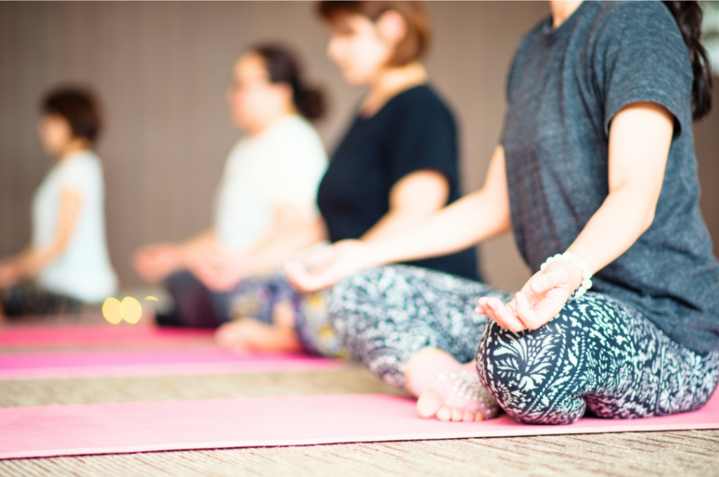 肩こり、股関節痛などの緩和、レッスンの最初と最後で、呼吸の深さや柔軟性の違いを実感。